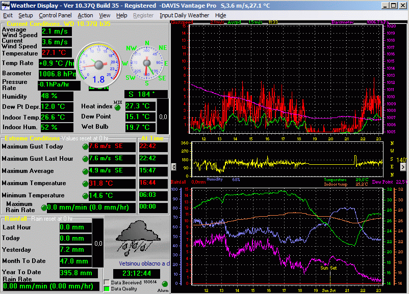 vítr, zde dosáhl nárazu až 12,1 m/s ve 22:46 SEČ. Celkem spadlo za den